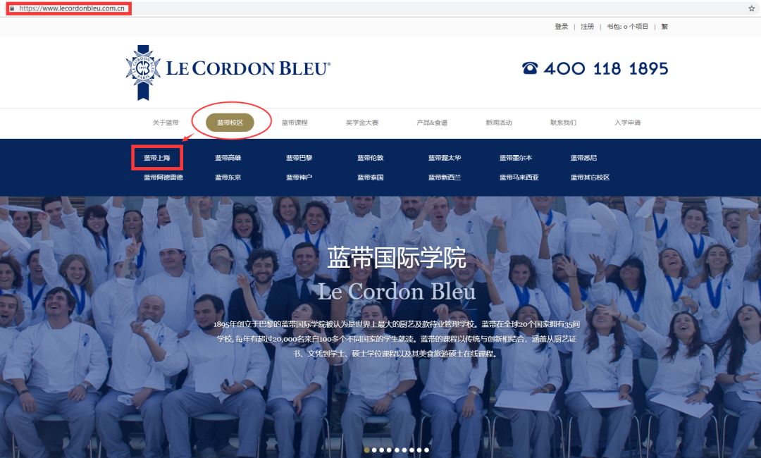 从蓝带官网 https://www.lecordonbleu.com.cn 导航栏进入详情页,有以下两种方法: